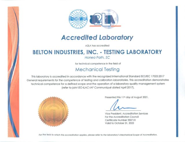 Home Specialty Solutions Why Buy From Belton Industries? Accredited-Lab-Cert